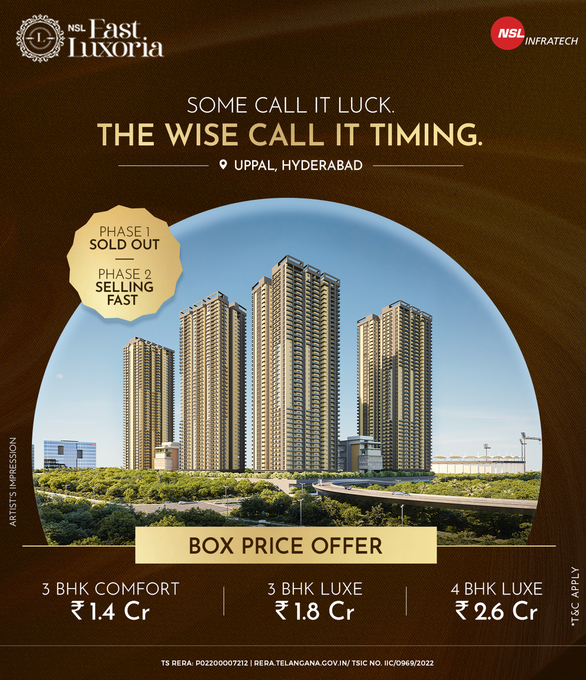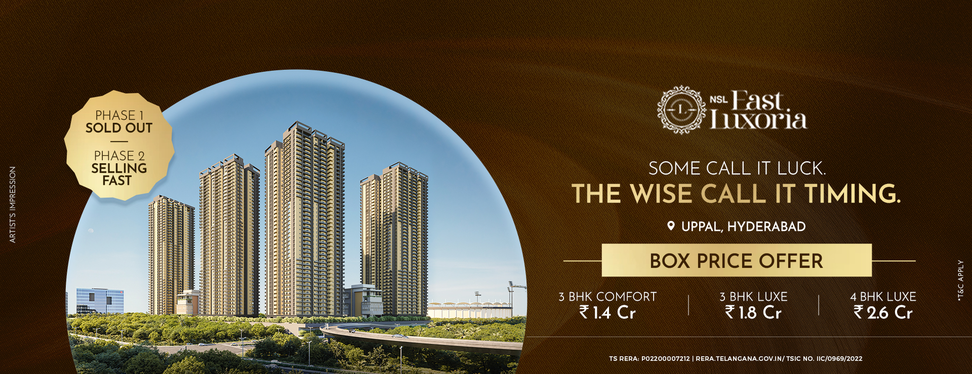 NSL East Luxoria is a crescendo in the clouds, a symphony of class and luxury reserved for the privileged few who would love to ‘Live it Up’ in the East. The two tallest twin towers in the Eastern Vector—majestic slit+44 high rise with 80,000 sft of royal amenities—are the true trendsetters in Hyderabad Realty. State-of-the-art clubhouses with two swimming pools, landscaped decks, luxurious green spaces, and world-class indoor and outdoor sports facilities make for a lavish lifestyle beyond words.