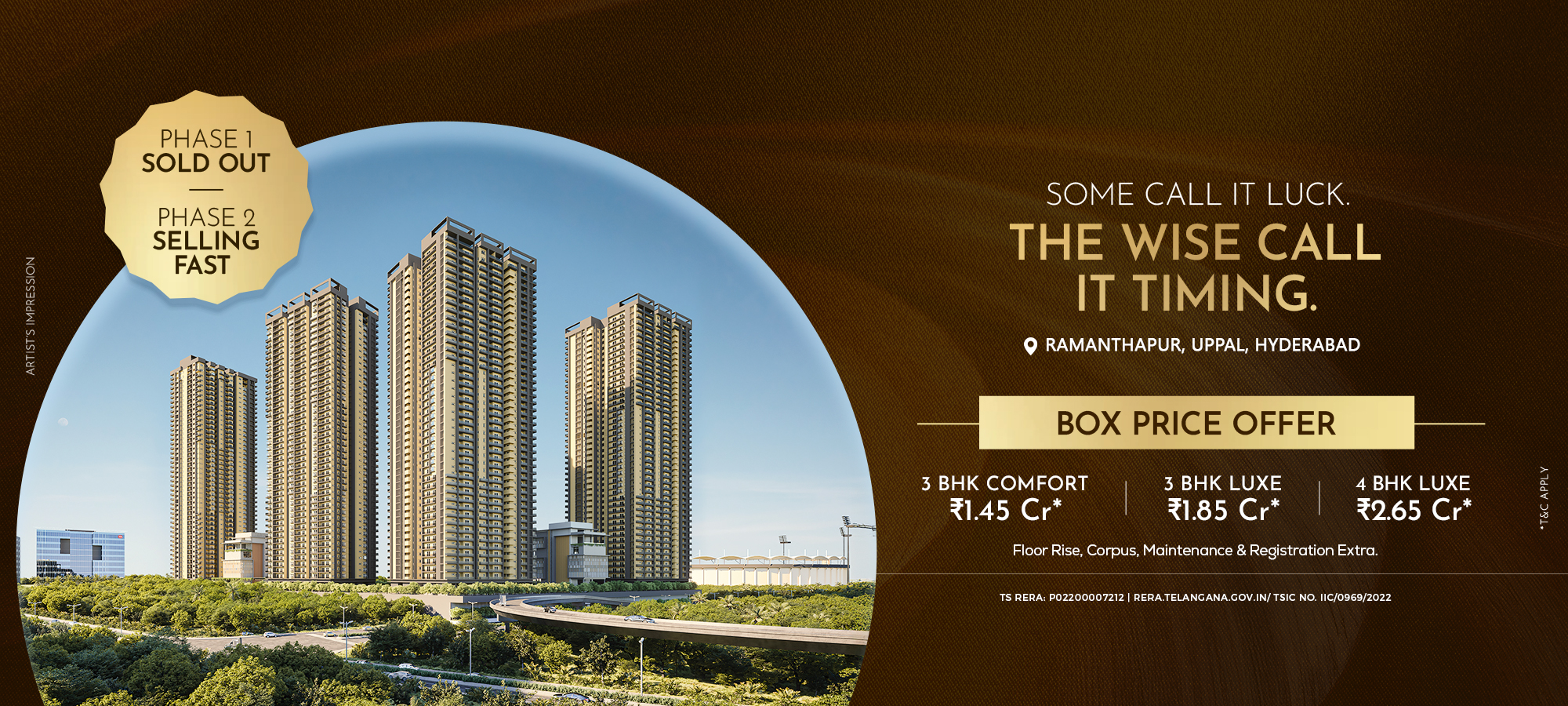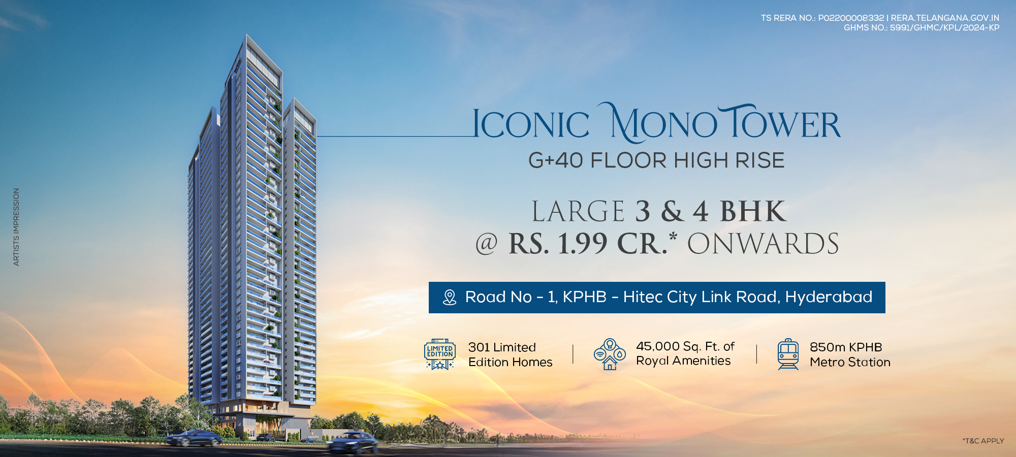 NSL Nakshatra is an ultra-premium tower residency in the prime location of KPHB abutting 875 acres of lush green lung space, surrounded by well-matured social infrastructure. This one-of-its-kind Ground + 40-Storey highrise takes aspirations sky-high, where you have the privilege of living in one of the tallest towers in the vicinity. Imagine a view of the bustling city skyline or picture the ethereal spectacle of stars from the rooftop, where the city's pulse meets the sky's embrace.